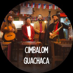 Cimbalom Guachaca es una banda de jazz con un formato instrumental inédito en el país al incorporar el cimbalom, instrumento nacional húngaro de cuerdas percutidas único en Chile. Su música está enraizada en el jazz guachaca, estilo creado por Roberto Parra que abarca sonoridades del swing, fox trot y jazz gitano, ritmos populares latinoamericanos, y por supuesto también un poco de folklore nacional. Integrada por Rodrigo Contreras en Cimbalom, Gonzalo Hernández en Saxo, Rodrigo Montero en Contrabajo y Sebastián Aravena en Guitarra, Cimbalom Guachaca combina en su propuesta musical sofisticada simpleza con elegancia popular, así como un carácter local y cosmopolita dado por su extravagante instrumentación. La banda refleja a través de sus composiciones originales el humor pícaro y “chispeza” del chileno, así como un profundo orgullo por su cultura popular.