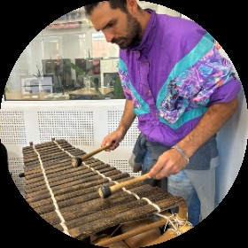 .Músico, Percusionista, Educador Popular, Luthier e Investigador de las músicas de raíz y el folclor latinoamericano. Técnico en Sociología. En el año 2016 cursando el 4 año de la carrera en Licenciatura en Sociología, obtuve una beca para realizar un intercambio estudiantil en la Ciudad de Bucaramanga, Colombia. Inclinado por el estudio de las raíces culturales y musicales sudamericanas posterior al intercambio emprendo un viaje por distintas comunidades afrodescendientes e indígenas. A partir de ese viaje de formación decido dedicarme al estudio, aprendizaje y dedicación de la música de raíz latinoamericana formándome con distintos maestros. Al día de hoy he recorrido los países de Argentina, Uruguay, Brasil, Bolivia, Ecuador, Colombia y Chile buscando y conectando en cada uno de ellos con las raíces profundas de la música y la cultura.
