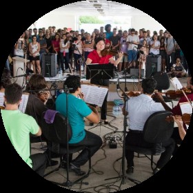 Sobre Criada em 2016, a Camerata de Cordas da Universidade Federal do Ceará é um grupo de extensão artístico-pedagógico vinculado ao Programa de Promoção da Cultura Artística (PPCA/Procult). Sob a direção da Prof.ª Dra. Liu Man Ying e da Prof.ª Ms. Dora Utermohl de Queiroz, reúne atualmente cerca de 25 alunos da graduação e da extensão em Música da UFC, com apoio da Pró-Reitoria de Extensão e da Pró-Reitoria de Cultura. A Camerata desenvolve um repertório diverso, que vai da música erudita — do barroco ao contemporâneo — até a música popular brasileira e trilhas sonoras de videogames e animes, destacando-se por sua vocação para a formação de plateia e a inovação pedagógica no ensino coletivo de cordas. Trajetória / Destaques Desde sua fundação, a Camerata já realizou mais de 170 concertos, alcançando um público estimado em mais de 65 mil pessoas. Apresentou-se em espaços de grande relevância cultural, como o Museu da Imagem e do Som do Ceará (MIS-CE), com concertos temáticos dedicados à música brasileira e a repertórios de videogames e animes, e participou de eventos de impacto formativo, como o V Encontro Mestre e Aprendiz em Aquiraz. O grupo também marcou presença em palcos históricos de Fortaleza, como o Teatro São José, em parceria com o Grupo Vivace. Além das apresentações artísticas, a Camerata tem papel estratégico no PPCA/UFC, funcionando como laboratório de prática orquestral, ambiente de formação para jovens músicos e espaço de diálogo entre a universidade e a comunidade. Sua trajetória alia excelência artística e compromisso social, consolidando a Camerata como uma das iniciativas mais relevantes da política cultural da UFC.