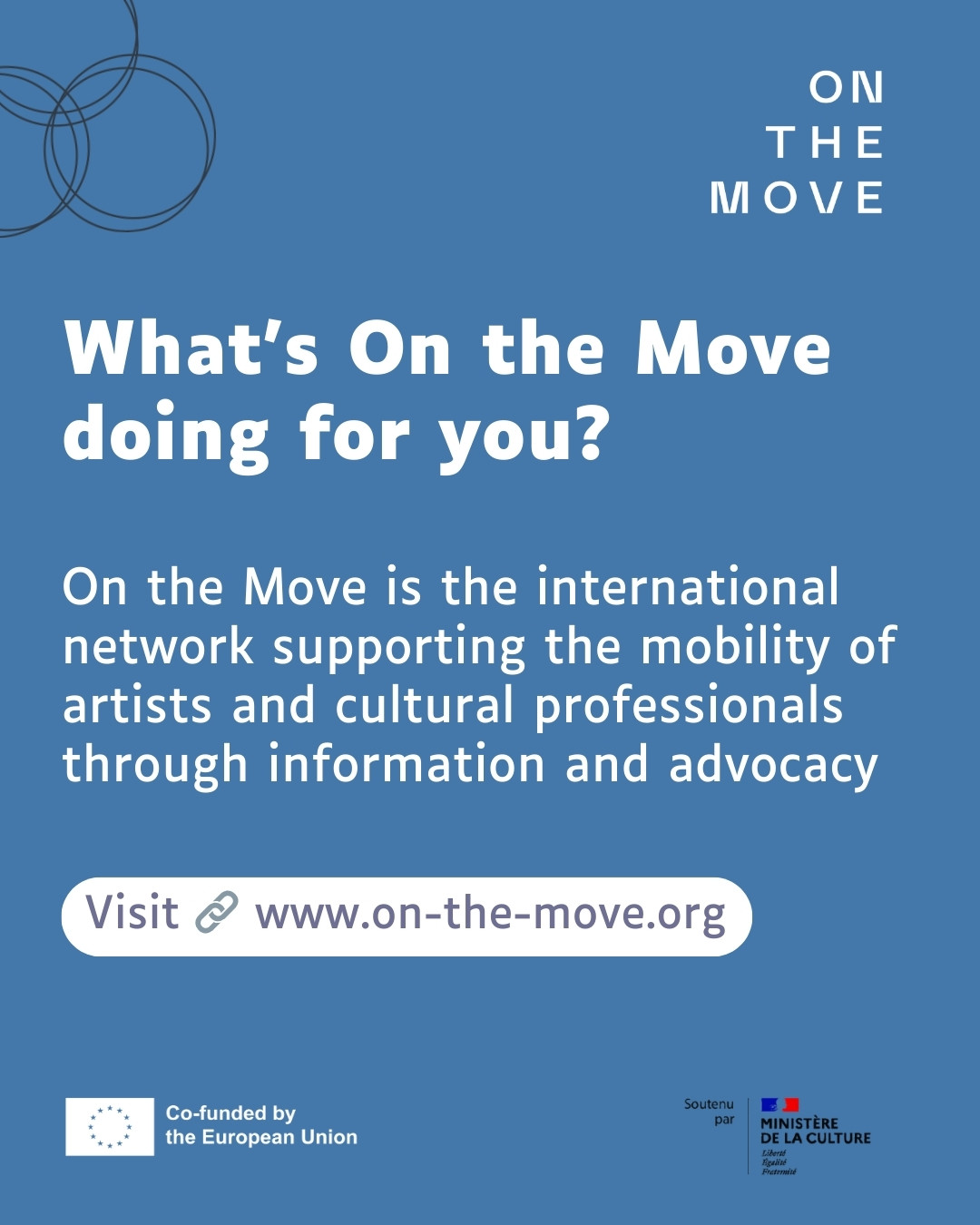 La plataforma reúne además informes, estudios y guías prácticas que pueden resultar de gran utilidad para profesionales del sector. Aunque el sitio web se encuentra en inglés, varias de las guías de financiamiento están disponibles también en español. Asimismo, ofrece información especializada sobre visados para profesionales de la cultura, legislación fiscal y otros aspectos clave vinculados a la circulación internacional de artistas, a través de su sección específica Mobility Information Points (MIPs).